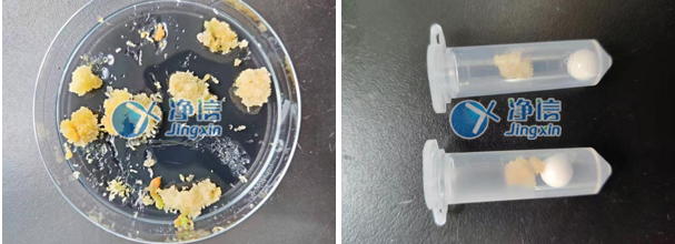 上圖為1分鐘的研磨效果,已經完全研磨完成。效果非常好,老師要求愈傷研磨一定要凍液氮,否則rna可能降解,所以人工研磨特別不方便,經過多次了解和對比所以老師們選用凈信全自動樣品快速研磨儀代替人工處理。效率高,效果好。解決了老師的研磨問題。